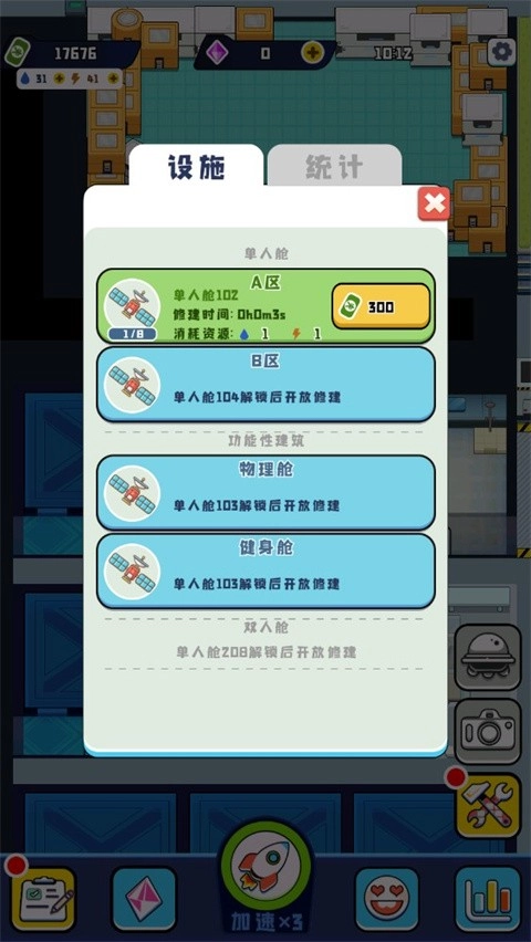 为你提供各类的太空舱,不同的设施有不同的作用。