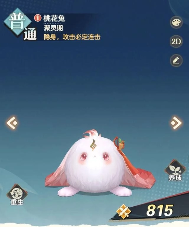 神兽特性:桃花兔作为新手桃花师入手的首只契灵,凭借连击、隐身等技能机制而闻名。虽然它只是普通契灵,然而在游戏里的表现极为亮眼,特别适合用于PVP战斗。