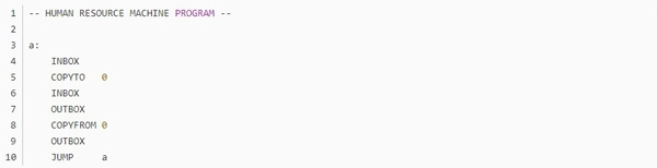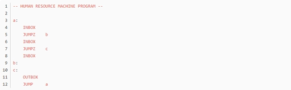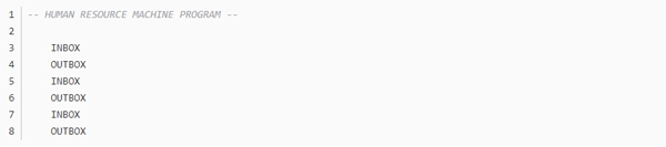 你的程序要告诉你的工人取出INBOX中的每件东西,然后放到OUTBOX中。