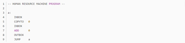 此刻,你获得了使用一项全新命令的权限!无论你手中持有何种数值,执行ADD命令,都会把地板上特定地砖的内容添加到你手上。