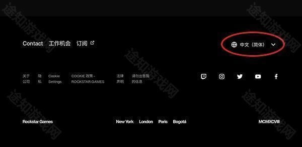 玩家可以翻到页面底部更改Rockstar游戏盒的语言。