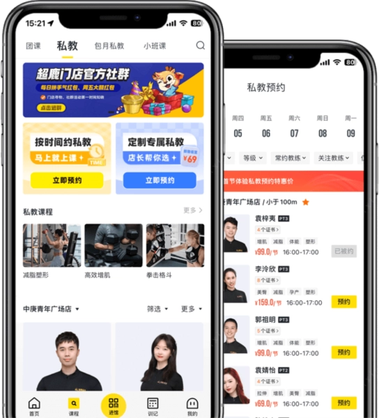 提供了多种优惠资源可以让用户线上预约健身课程更实惠;