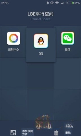 3、将你想要的软件添加到\\"LBE平行空间\\"界面中;