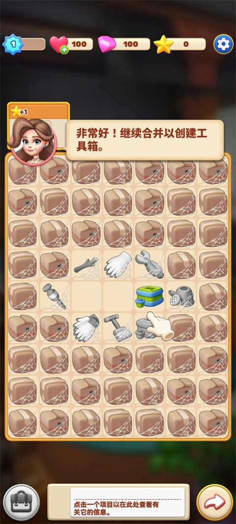 在拼图游戏板上,把两个相同元素进行合并,从而创造出全新的物品与工具,借助这些来翻新客厅、卧室、厨房、花园以及温室等各类房间。