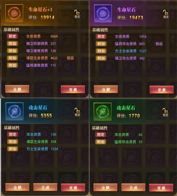 强化星石等级可提升星石固定资质的属性值,强化等级越高,加成越高,最好强化至+10。