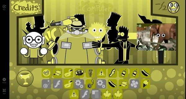 3、sprunki模组的一大特色便是恐怖模式。操作也很简单,只需将最后一顶帽子拖到第三个角色的头上,画风瞬间转变,随即就进入恐怖模式了。