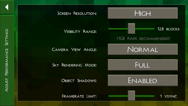 2、“settings”中的“performance”中,我们还可对游戏中的画质进行自定义设置,对于设备配置较低的玩家,可适当的降低画质,来提高游戏的流畅性