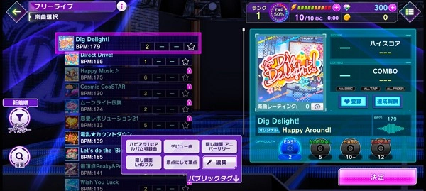 6、挑选想要挑战的歌曲,并选择难度,难度分为EASY、NORMAL、HARD、EXPERT这四种。