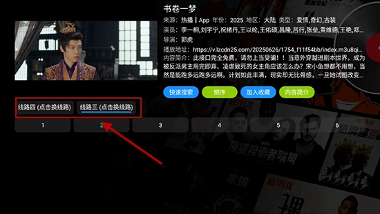 3.播放时若遇卡顿,点击播放界面线路切换,选择其他播放源