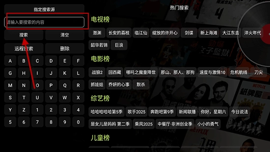 2.点击首页“搜索”按钮,输入影片名称、演员或关键词查找资源