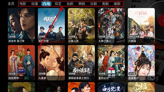 1.打开蜗牛影视TV,页按“电影”“电视剧”“综艺”“动漫”“韩剧”“美剧”等分类展示,点击对应分类浏览内容