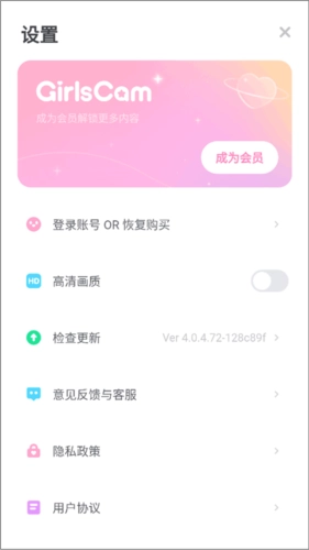 5、随后,在设置界面,大家能够在此选择并点击“成为会员”选项,从而获取更多由GirlsCam国际版提供的专属服务与功能。