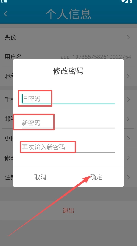 2、在个人信息展示页,点击下方“修改密码”选项。