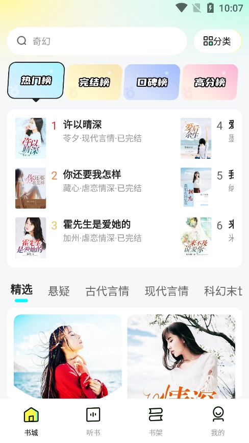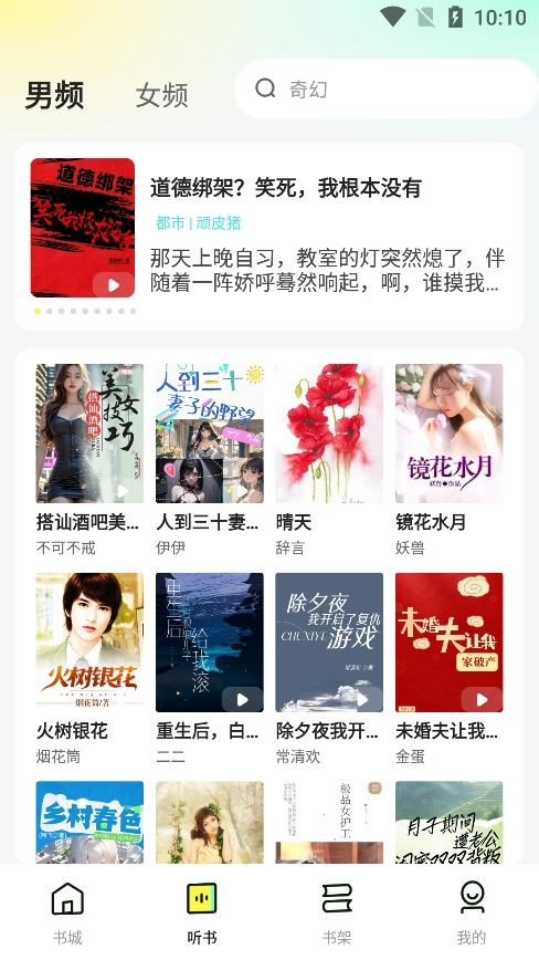 1、点击底部的听书进入到相应的板块