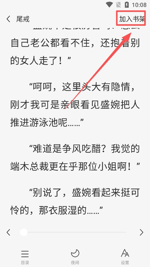 4、点击页面中部唤醒菜单,随后点击右上角的“加入书架”选项,即可完成操作。