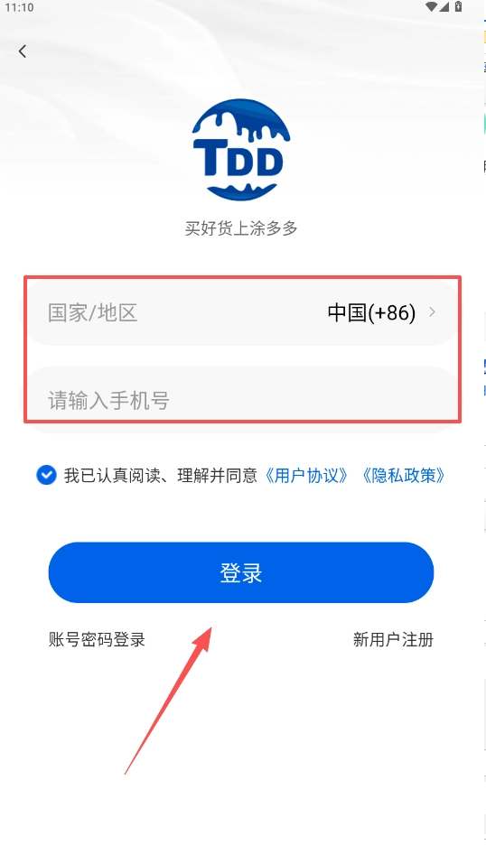 2、选择国家地区,输入要入驻用户当前正在使用的手机号码。