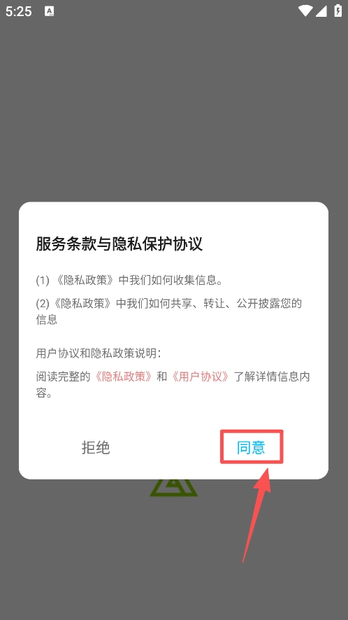 2、进入软件后,阅读并点击“同意”隐私协议,进入主界面。