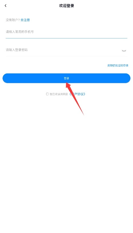 2、输入已注册的手机号和密码,勾选同意选项后点击"登录"进入记账主界面。