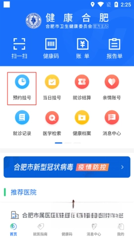 1. 打开健康合肥App,点击预约挂号。