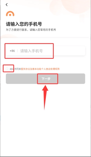 2、输入手机号并勾选协议,点击下一步完成登录。