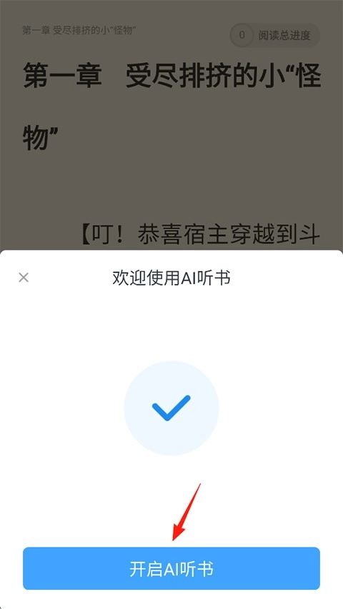 2、点击屏幕,在弹出的功能对话框中选择右下角的听书