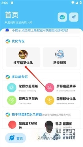 4、在多功能专区中,点击“和平精英优化”。