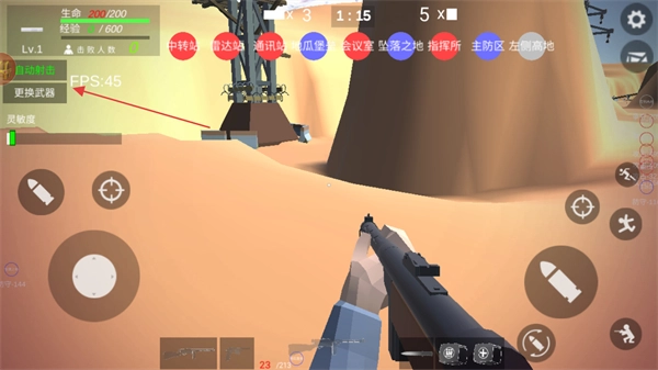 4、开启自动射击按钮,方便在移动中攻击敌人,提升战斗效率。