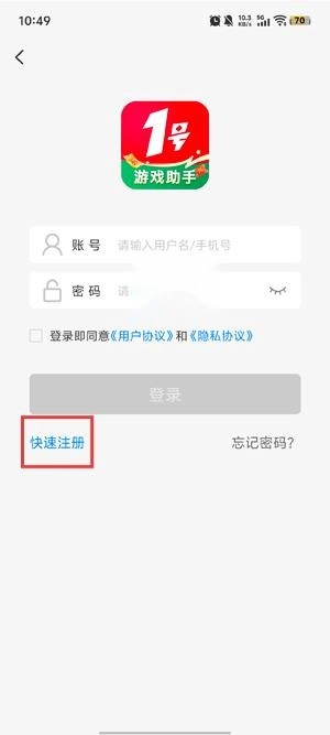 在登录界面点击下方的快速注册功能。