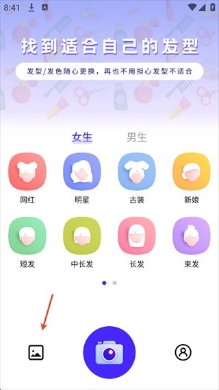 1、启动应用:打开发型师,点击首页的“相册”按钮。