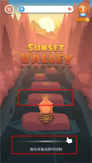 2、接下来,按住屏幕并拖动,就能控制小熊左右移动;而持续按住屏幕,则可让小熊不断跳跃。
