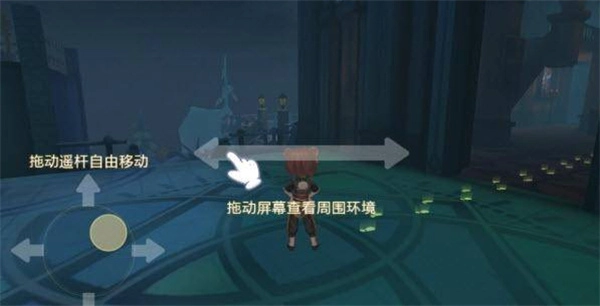 3、通过灵活操控下方摇杆,实现角色移动,同时拖动屏幕,观察四周情况。
