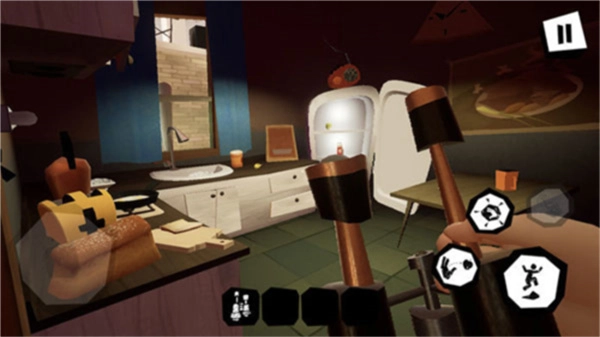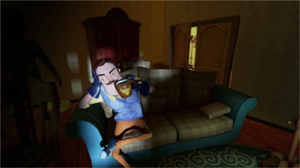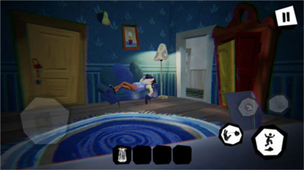 3、恐怖的画风与场景设计营造出阴森诡异之感,黑暗的房间以及突然现身的邻居带来强烈压迫感,为你带来极具氛围感的游戏体验。