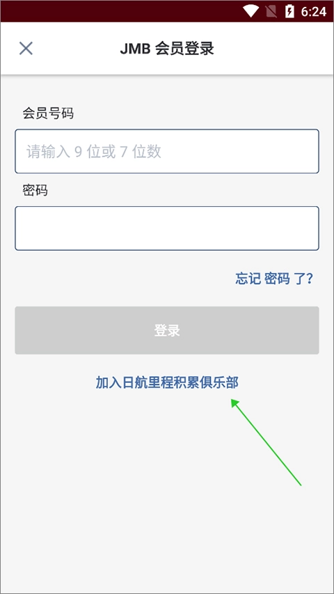 用户可前往主页面,点击【登录】,在打开的登录页面中,点击【加入日航里程积累俱乐部】,即可进行免费会员注册。