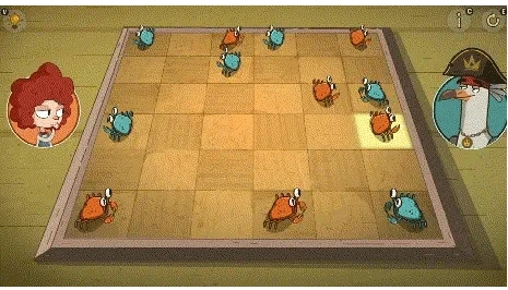 ●玩家每次可控制一只螃蟹横向或纵向移动,螃蟹移动格数不限,遇到其它螃蟹或边界时停止