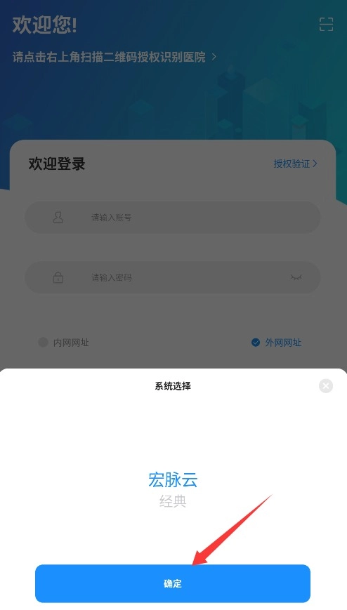 2、根据使用需求选择宏脉云或经典授权验证系统,进入对应的登录验证页面。