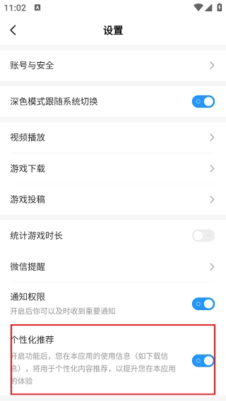3、只需点击一次,就能打开“设置”窗口。在此窗口中,你会看到“个性化推荐”选项,接着点击该选项右侧的开关按钮,即可完成关闭操作。