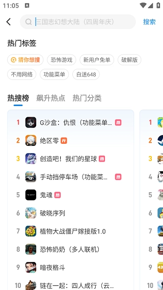 2、要是在推荐资源里没找到喜欢的游戏,可点击上方的搜索框,输入关键词来搜索。