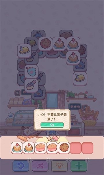 只需点击堆叠在一起的三个相同食材,就能实现消除操作,进而用于制作甜点以及升级食谱。