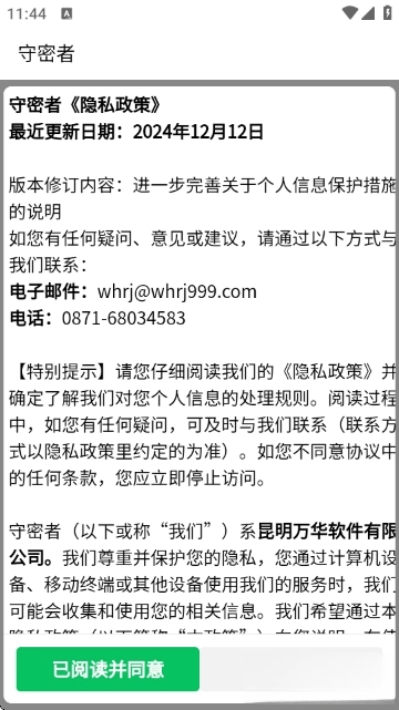 1、并安装“守密者”,首先请同意用户协议和隐私政策,