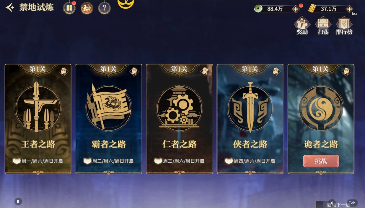 2、推荐参与噬牙狱、蜀道迷廊、世外瀛洲、禁地试炼活动