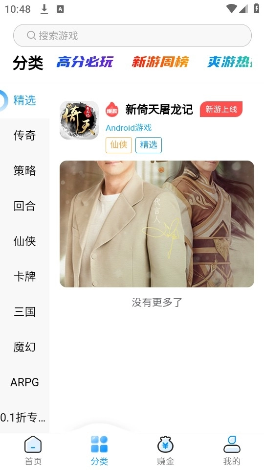 2、进入首页以及“分类”板块,这里为玩家准备了海量游戏资源,包含回合制游戏、三国题材游戏以及传奇类游戏。