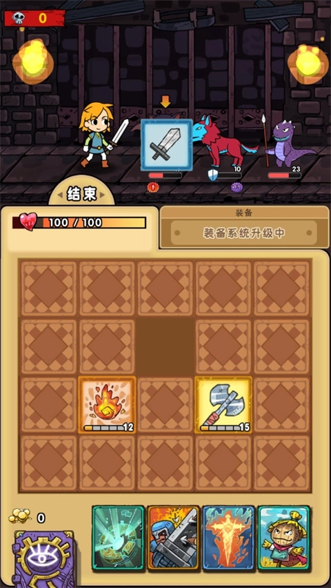 4、收集强化:击败怪物获取卡包奖励,内含新技能卡牌,还能收集道具装备,强化角色能力。