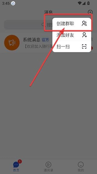 1、点击进入随行聊首页,点击左上角【+】