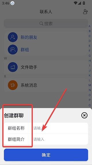 4、根据提示依次输入【群组名称】【群组简介】