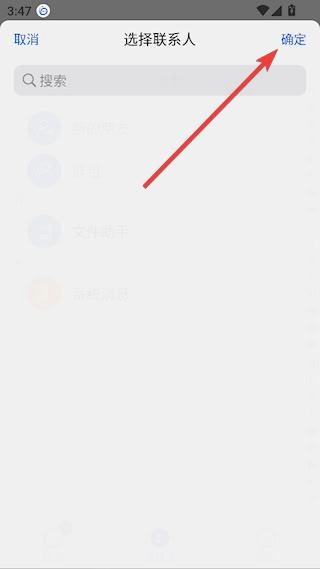 6、选择联系人后,点击右上角【确定】即可
