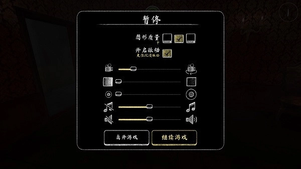 3、在界面的左上角,设有设置选项。通过该选项,能够对图形质量(分为低、中、高三个档次)进行修改,也可以开启振动功能。此外,还能够对音量、音效以及视角进行调节。
