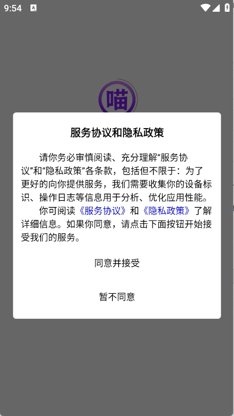 1.打开紫喵喵App,查看并同意隐私政策与用户协议