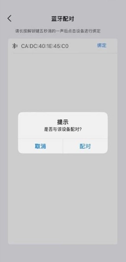 请长按遥控手柄上的“解锁”键,持续5秒钟。当听到一声提示音时,就表明防盗器已成功进入配对模式,此时“蓝牙绑定”界面会显示可使用的设备编码。接下来,在搜索到防盗器后,点击该设备编码,再点击“绑定”即可。