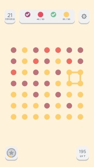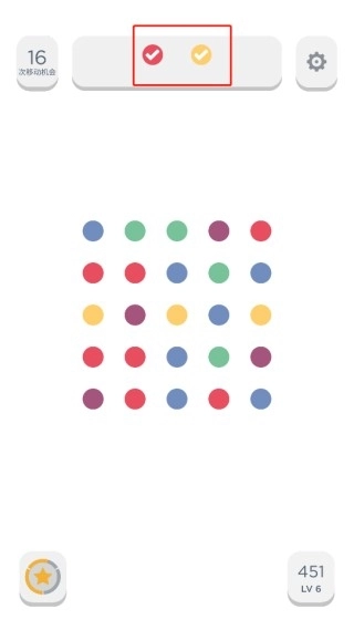 3、左上角显示的是本局游戏可移动次数,在中间收集带颜色的圆球,满足条件即可过关