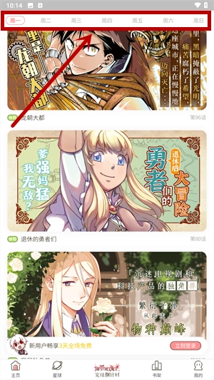 3、在图上所示,我们能够清楚的看到每天更新的漫画内容。